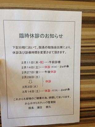 2月末~3月の臨時休診について