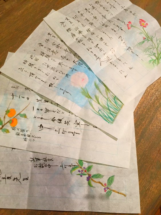 便箋一枚一枚に、秋桜やススキ、柿など、